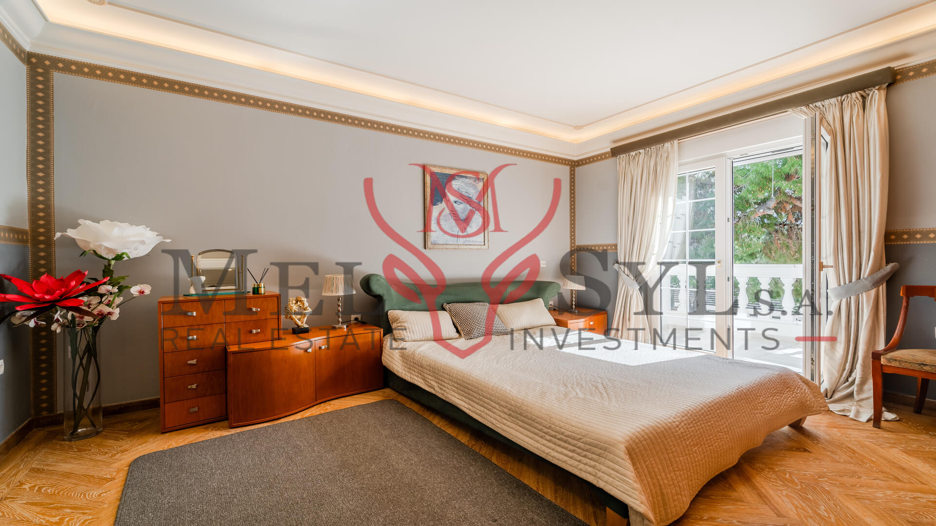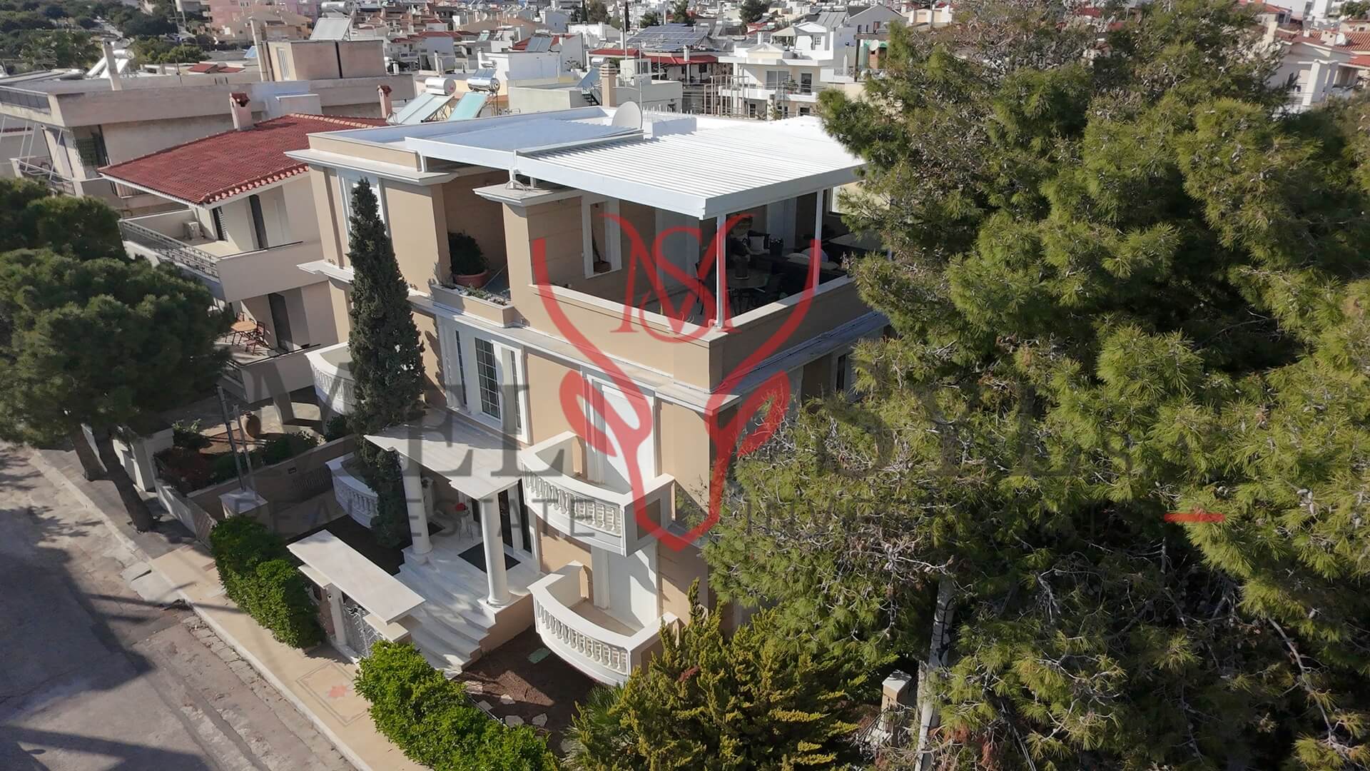 This dazzling 605 sq.m. detached villa, set on a prominent corner plot of 340 sq.m., is located just 1.5 km from the Athenian Riviera and a mere 50 meters from the verdant landscape of Pani Hill Park. A true architectural gem in the heart of Alimos, it offers a unique blend of classical charm and modern sophistication. Designed in a neoclassical style and fully renovated in 2025, the residence exudes timeless elegance and comfort across its expansive interior, which unfolds over five levels: